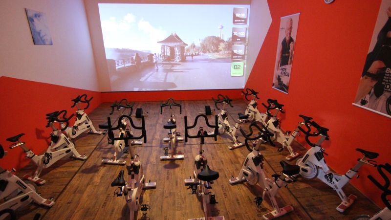 Die Zukunft des Indoor Cyclings hat begonnen. Eine neue Dimension im virtuellen, interaktiven Indoor Cycling vor einer Großbildleinwand ca. 6 x 5 Meter. Atemberaubende Landschaftsaufnahmen machen das Indoor Cycling zu einem außergewöhnlichen Erlebnis, wo man entspannt und ohne Langeweile die Kilos verliert, den Kreislauf sowie die Ausdauer verbessert.